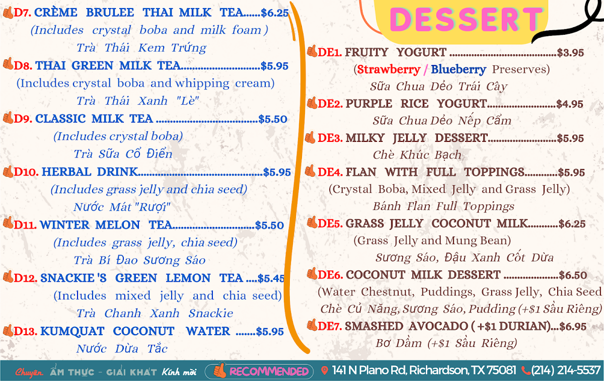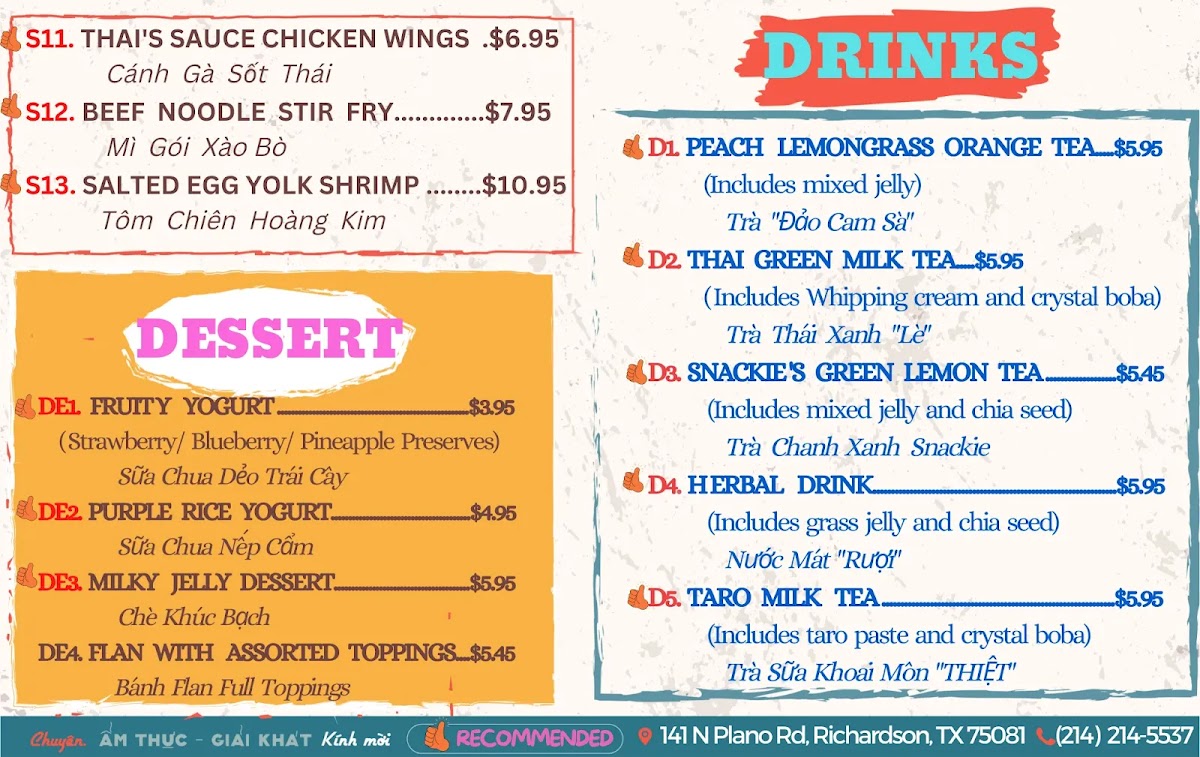 The menu at Snackie Viet offers a thoughtful balance of casual bites and comforting drinks, perfect for a laid-back meal or a relaxed gathering with friends. It blends traditional Vietnamese flavors with creative twists, making each dish feel both familiar and fresh.