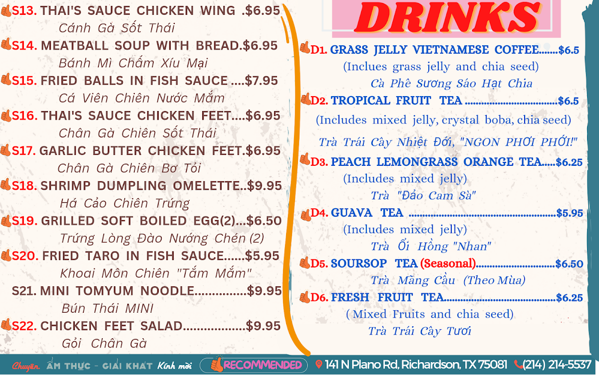 Refreshing drinks such as lemongrass-infused teas, iced coffee, and specialty Vietnamese coffee with grass jelly complement the food well, creating a balanced experience that suits the relaxed, welcoming atmosphere of the restaurant. The menu’s diversity encourages exploring different flavors in a setting designed for comfort and easy enjoyment.
