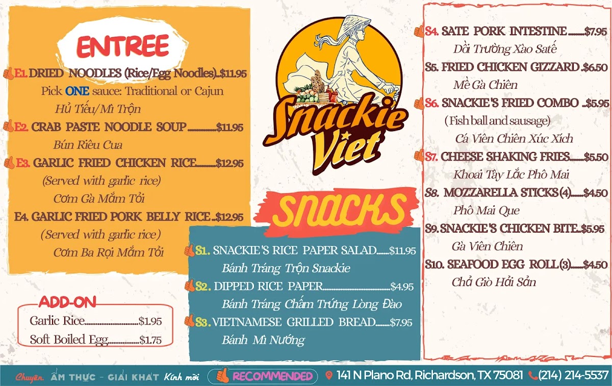 Snackie Viet Menu